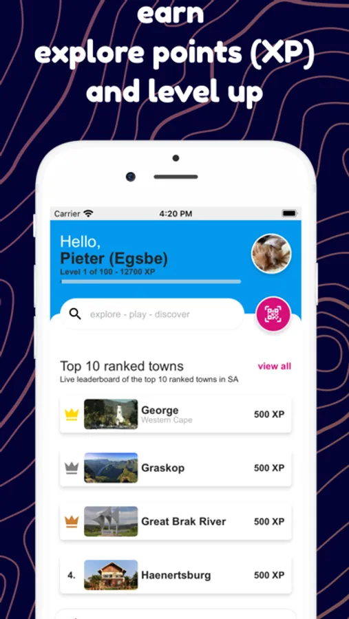 Game on! The more you play and earn XP points, the more hidden gems you unlock in your town and cities. Play against your friends, family, peers and everyone you know.Play to earn more XP points as you compete for rankings on various leaderboards.