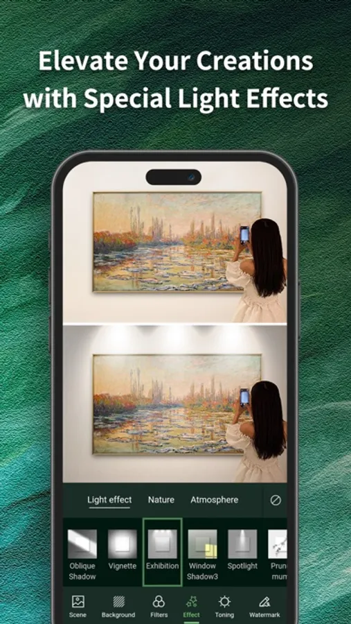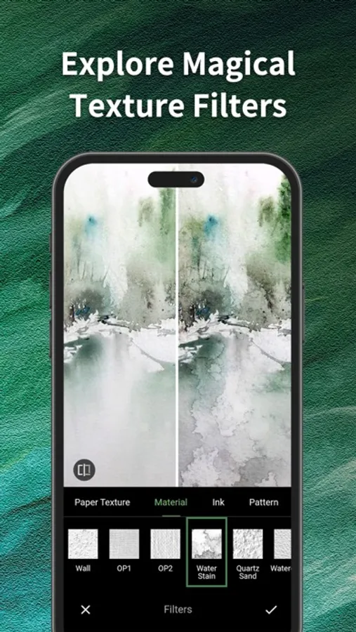 -Explore various material effects for your artwork, including wall textures, creases, linen fabric, water stains, and more.