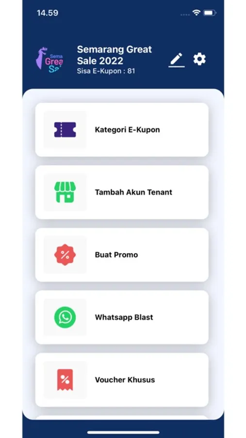 Semargres for Merchant merupakan aplikasi yang digunakan untuk memudahkan pengelolaan transaksi pada event Semarang Great Sale oleh merchant.