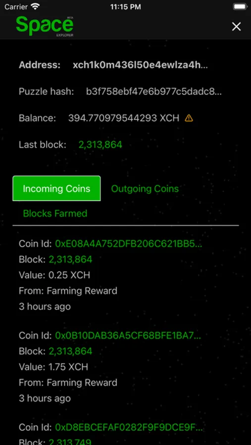 Space Explorer Chia Blockchain Screenshots