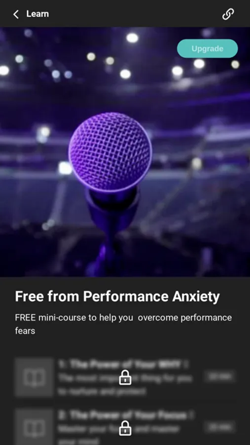 1. Basic: Includes a free course on overcoming performance anxiety and a directory of the best resources available for singers