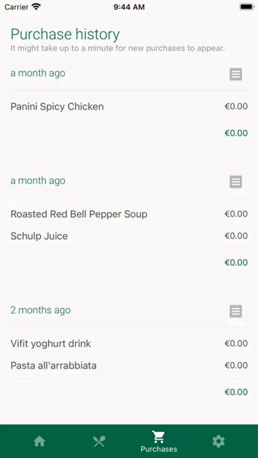 5) Done! In a few minutes. you will see in the app under "Receipts" the summary of what you have purchased