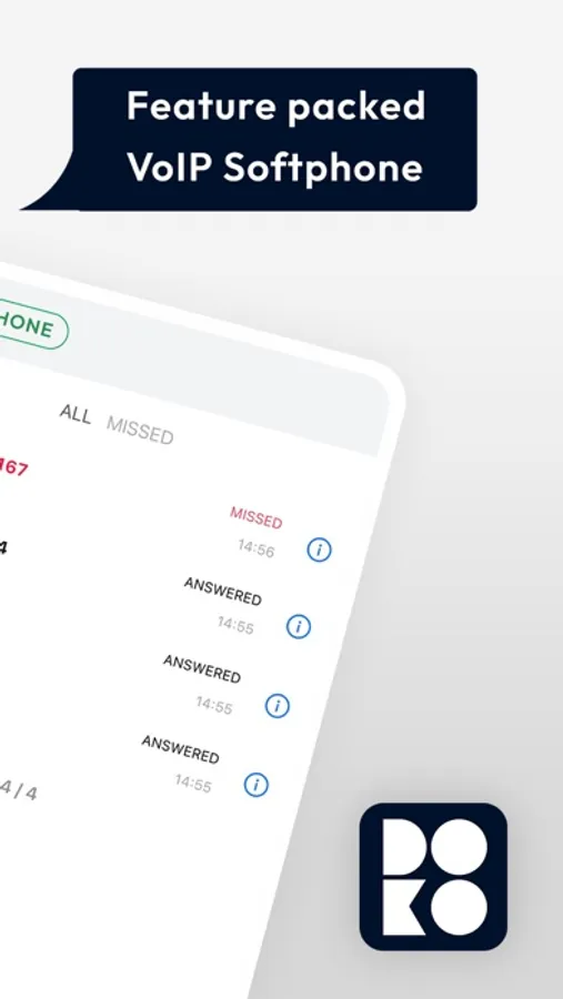 Doko-phone's accompanying softphone app to the Doko-phone platform. A SIP softphone app that supports push notifications, HD voice and video, and more.