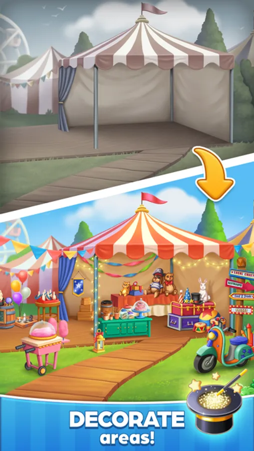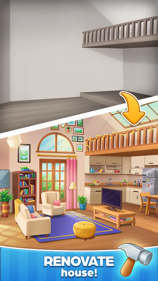 Be a renovation master by decorating areas from scratch! Home, cafe, garden decoration and renovation here in one place! Renovate new building related with the story and give them a fresh makeover! Restore your inner designer skills as time goes by. This merge puzzle is everything you need in a merge design game.