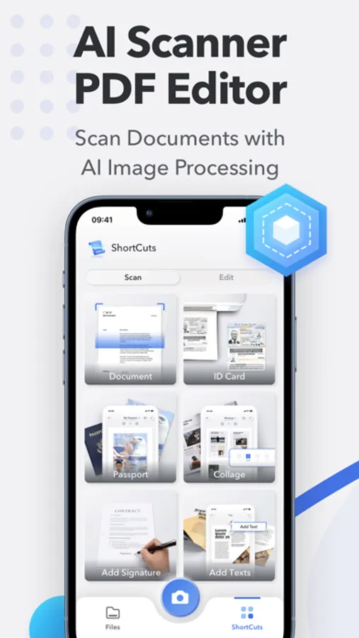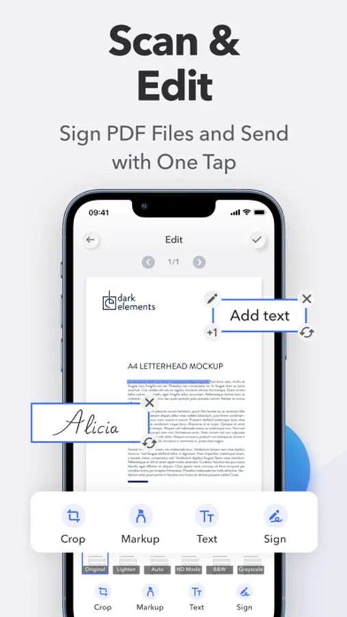 Scan your documents, IDs, passports, receipts, papers, etc. or import photo, documents from your camera roll. You can freely edit PDF files and images with several editing tools.