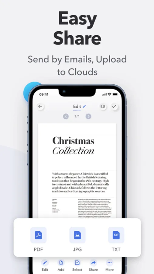 Download this app for FREE to scan documents into PDF, JPG, Txt formats, and share to Emails and iClouds.