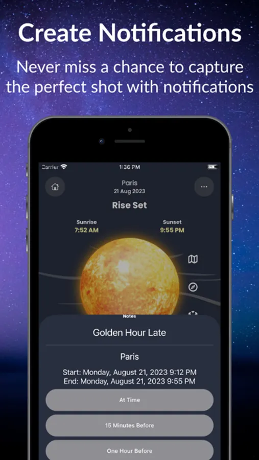 Never miss the sky's big moments again! With Sun Moon Expert, you can get reminders for sunrise, sunset, moonrise, and moonset. Plus, we'll keep you updated with the latest photography news and events. Be ready, and capture every perfect shot.