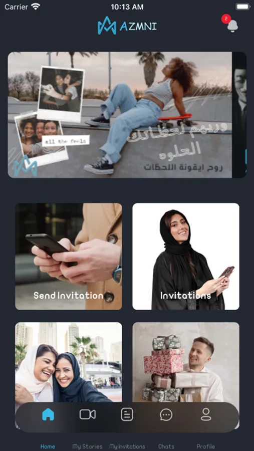 Azmni is an application of dating and invitations that aims to meet new friends and spend quality time with them, in addition to obtaining discounts and gifts in the places you would like to visit .. It is an application to spend the most beautiful times, exchange spells, send gifts and invitations to friends and share your diary with them