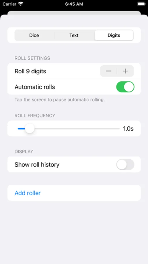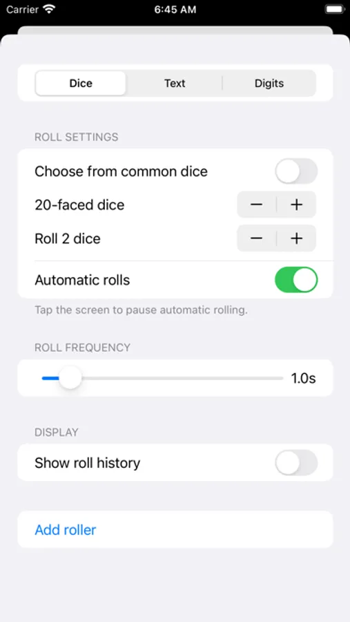 Say goodbye to endless scrolling or debates on what to choose. Roll with each tap, or set Arli to roll automatically every few seconds. Keep track of your rolls with the history view and mix and match different types of rolls for a unique experience. Unleash the thrill of chance with Arli today!