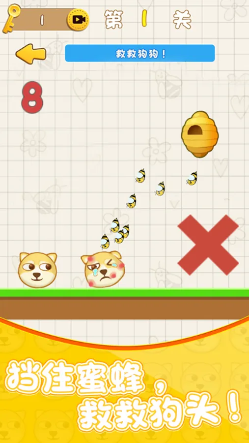保护狗狗是一款益智解谜小游戏,里面饱含海量烧脑关卡,每一关,都有一个狗头等着你开动思维来拯救他!