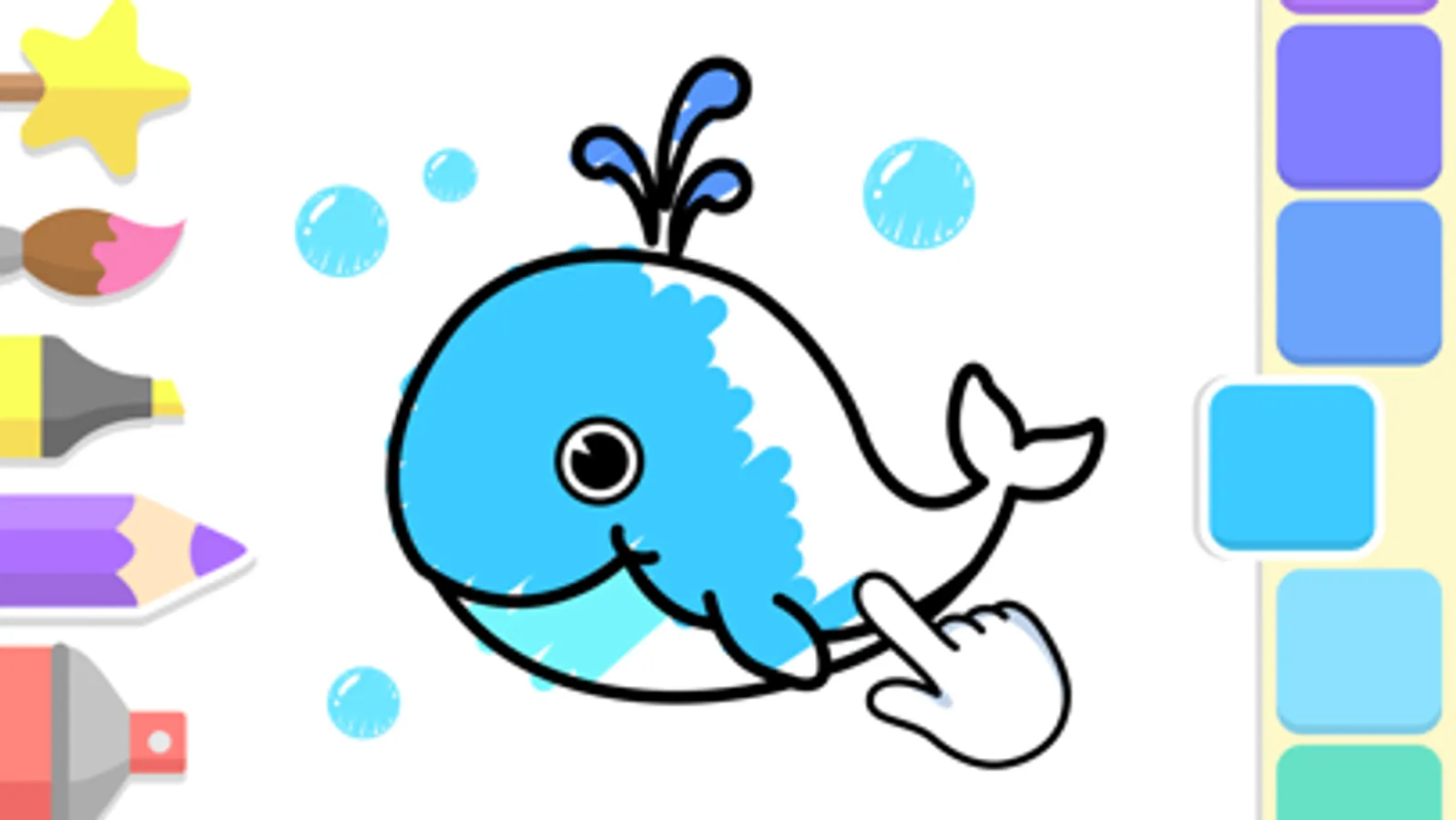 Coloring games for Kids features a simple and user-friendly interface with great coloring tools. Choose a paint from the color palette, take a tool from a special set, and get to work. Use a pencil, brush, or spray can to start filling in the picture with color. Or use the magic wand to color a specific area of the image with one touch.