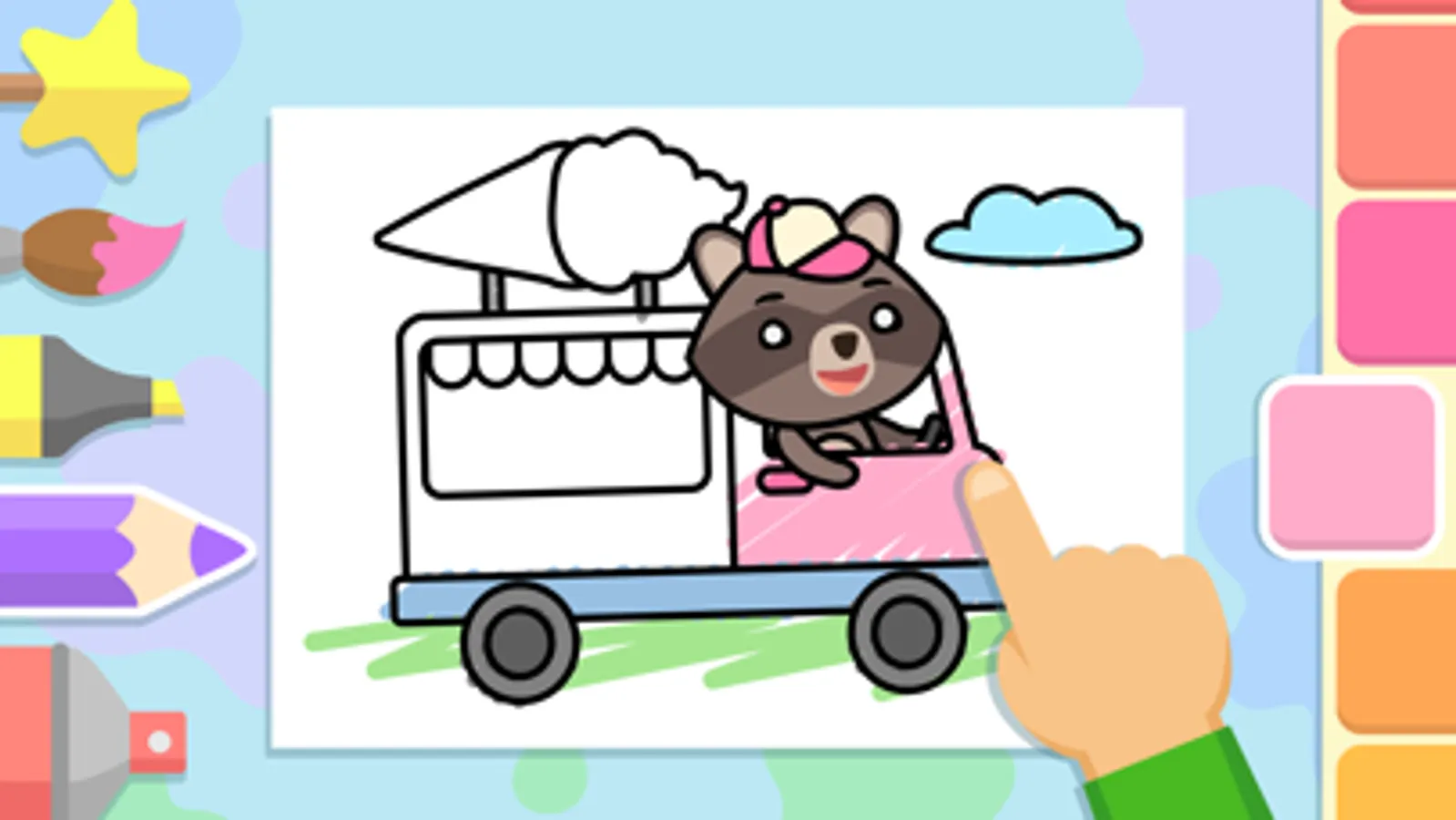 Coloring games for Kids – is an amusing coloring book app for kids in which there is a big collection of amazing pictures of different animals, vehicles and service cars.