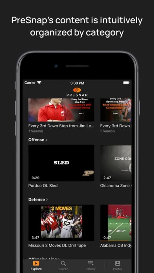 •PreSnap is clean and organized, making it easy for you to find the content you need to help you become a better player or coach.