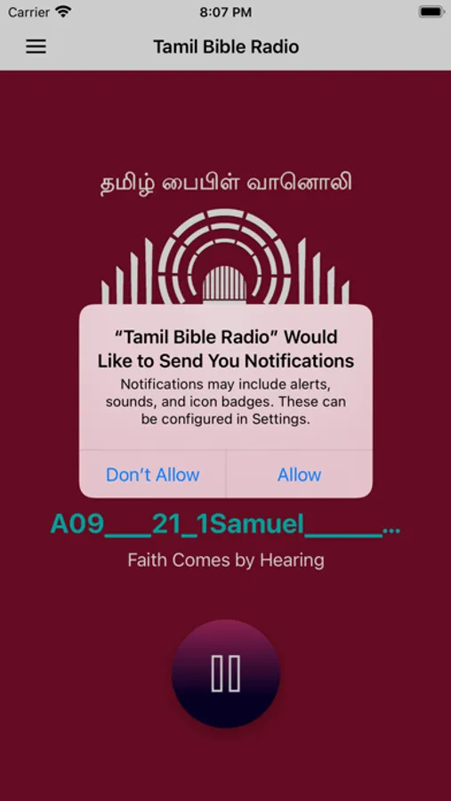 Listen Bible in background mode with notification control (Play/Pause/Stop)