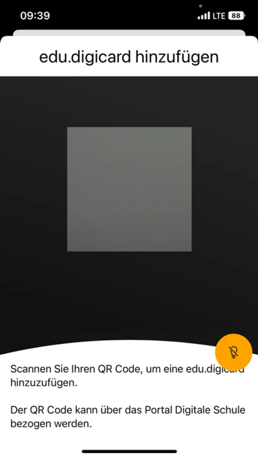 3. Scannen Sie den auf der edu.digicard Webseite angezeigten QR-Code mit Ihrer edu.digicard App.