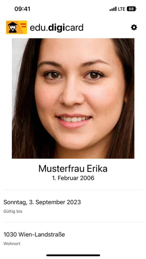 4. Jetzt wird die edu.digicard auf Ihrem Smartphone angezeigt. Die edu.digicard kann über den in der App angezeigten QR-Code auf ihre Gültigkeit überprüft werden.
