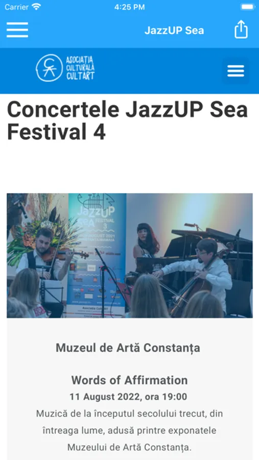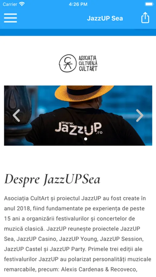 Asociația CultArt și proiectul JazzUP au fost create în anul 2018, fiind fundamentate pe experiența de peste 15 ani a organizării festivalurilor și concertelor de muzică clasică. JazzUP reunește proiectele JazzUP Sea, JazzUP Casino, JazzUP Young, JazzUP Session, JazzUP Castel și JazzUP Party. Primele trei ediții ale festivalurilor JazzUP au polarizat personalități muzicale remarcabile, precum: Alexis Cardenas & Recoveco, Elena Mîndru Trio, Răzvan Popovici, Justus Grimm, Luiza Zan, Berti Barbera, Sabin Laviniu Penea, Cătălin Răducanu, Johnny Bica, Viorica Pintilie, Adrian Flautistu, Eliza Puchianu, Ghassan Bouz, Michael Acker, Alexandru Stoica, Alexandru Arcuș, Tavi Scurtu și Albert Tajti.