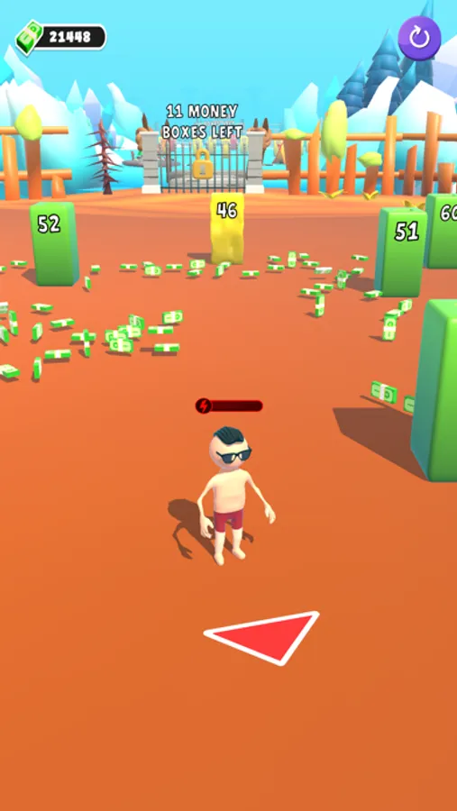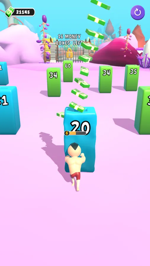 Push the boxes and earn money. Upgrade to character and earn more money.