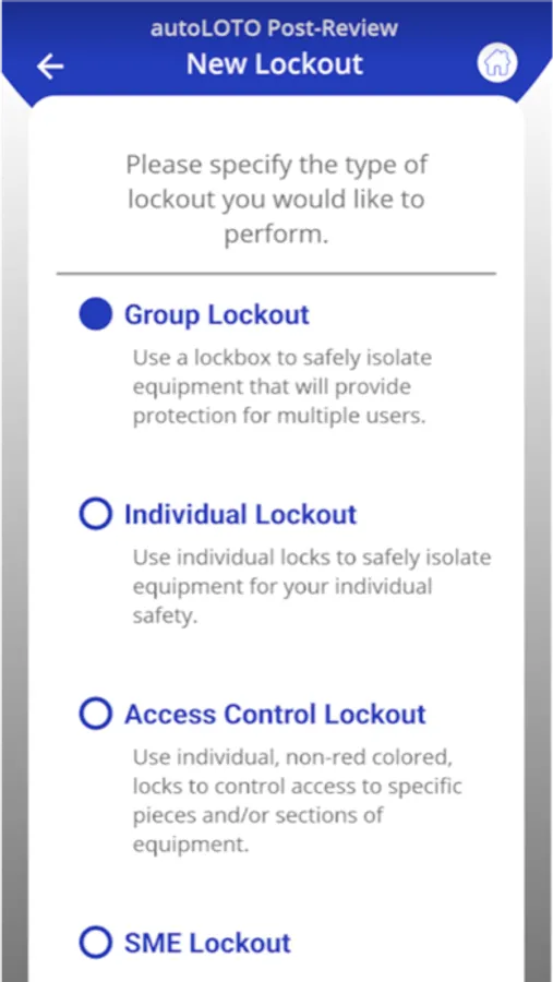 autoLOTO leverages this mobile application to provide a linear LOTO process, with a series of confirming phase gates, to ensure procedural compliance with existing LOTO standards and regulations.