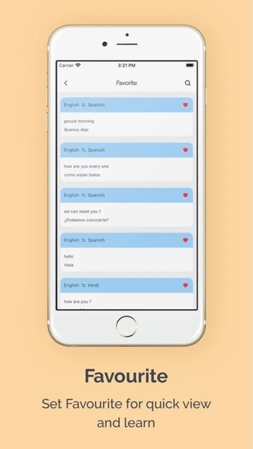 - Favorites: you set your favourites words for quick translator.