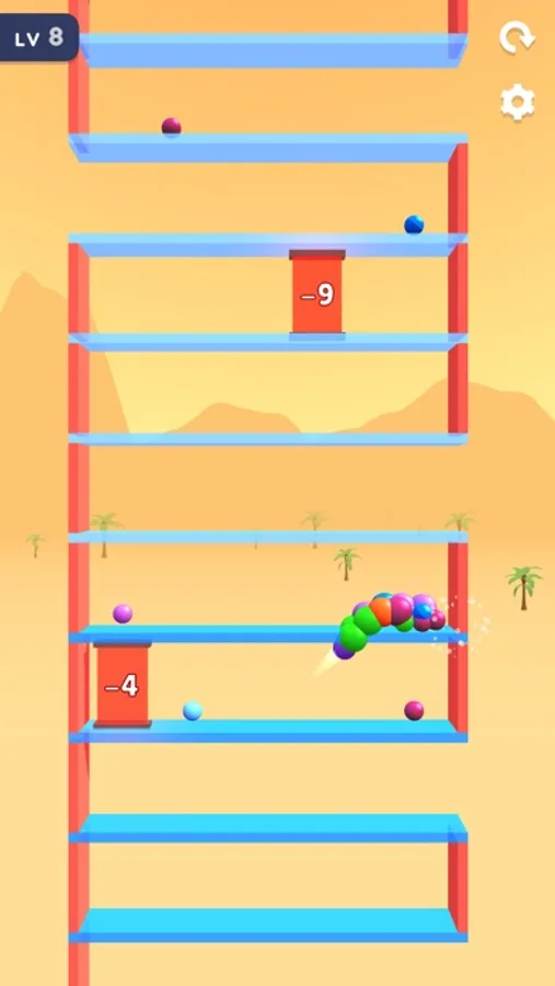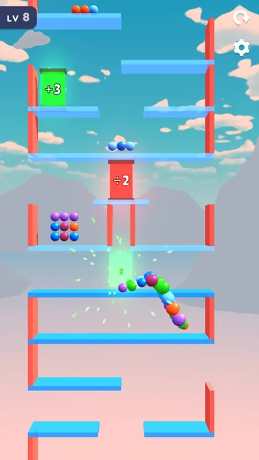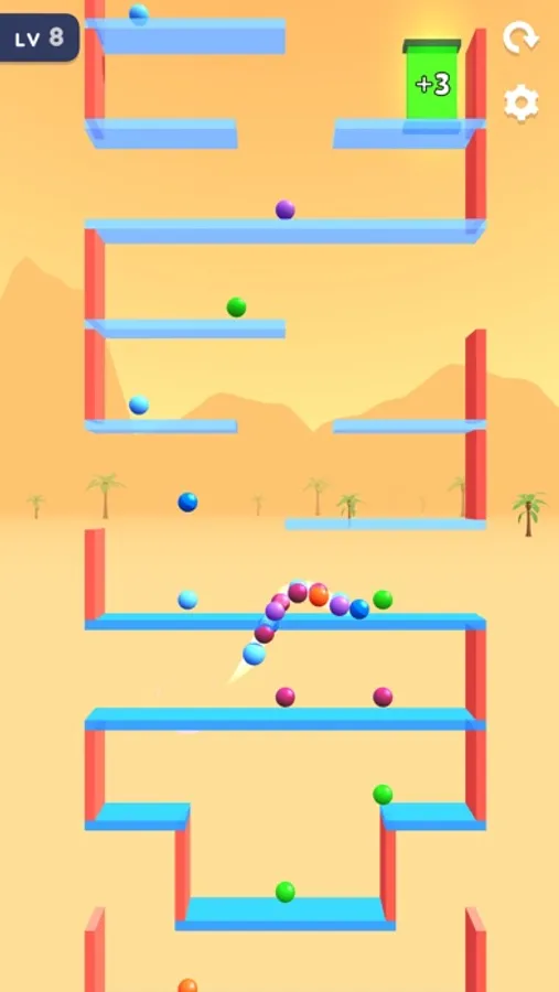 Tap to jump and make great combos. Avoid falling through gaps. Control your direction to collect balls and multiplier gates. Reach the top with maximum ball number.