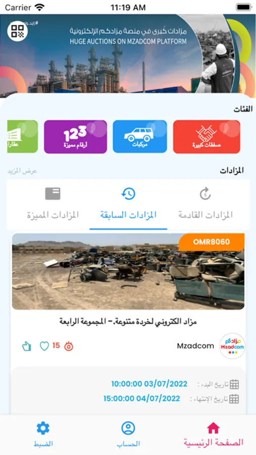 اول تطبيق عماني متخصص في المزايدة الإلكترونية ذو مسؤلية إجتماعية . ( إعرض ، زايد ، و اكسب)