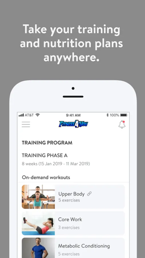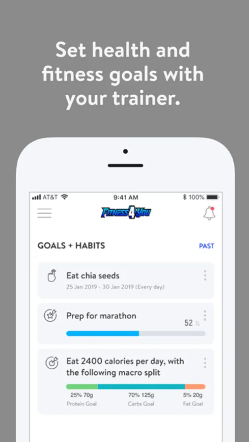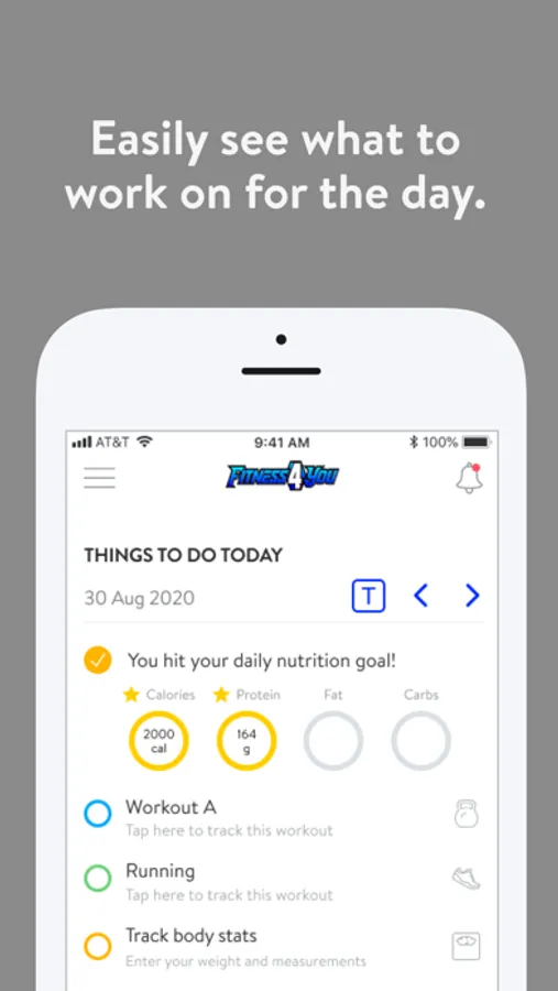 With the Fitness 4 You App, you can start tracking your workouts and meals, measuring results, and achieving your fitness goals, all with the help of your personal trainer.