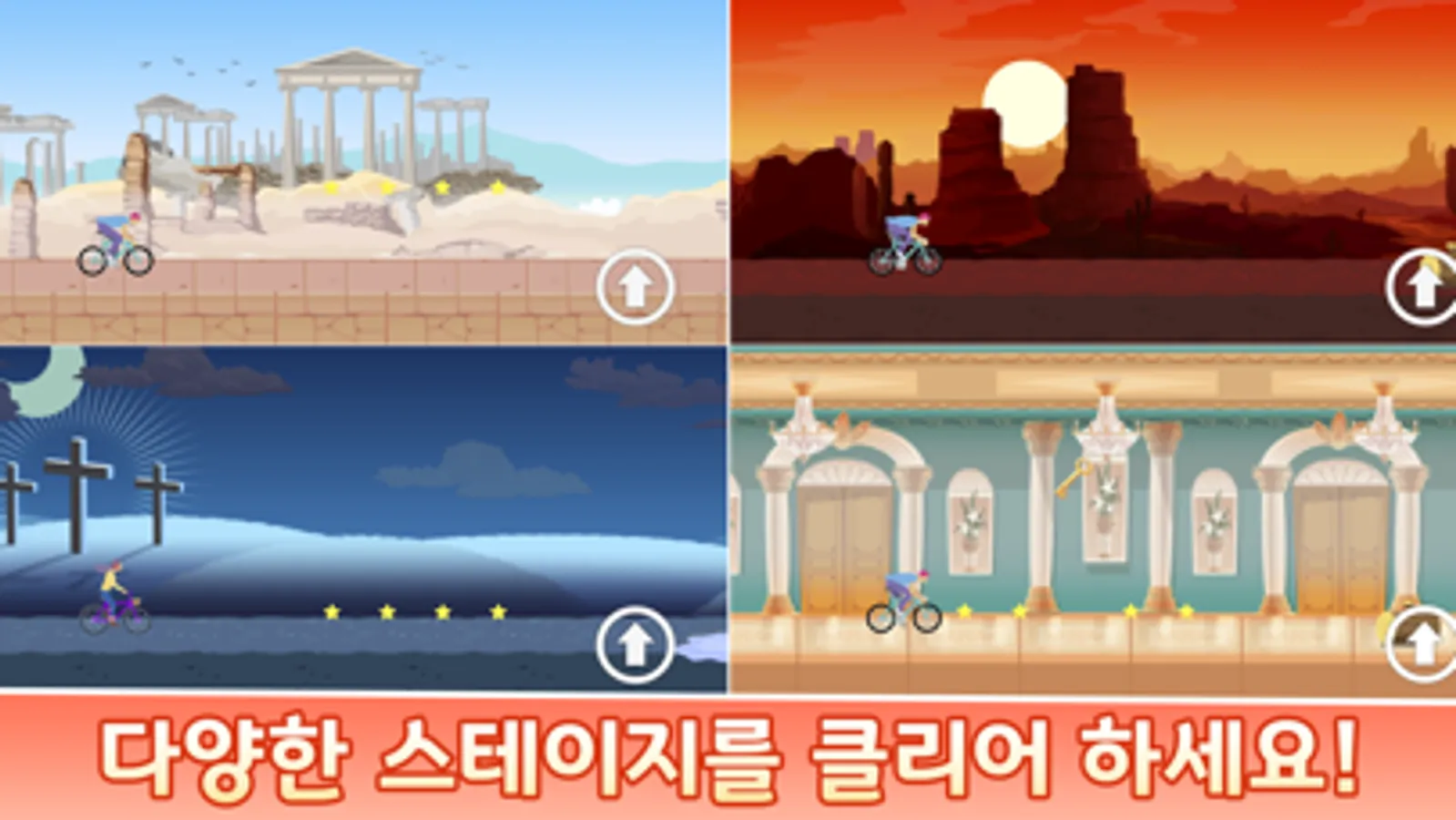 - 자전거 구입, 무적 아이템 등 다양한 게임 요소와 함께 재미있게 즐겨 보세요!