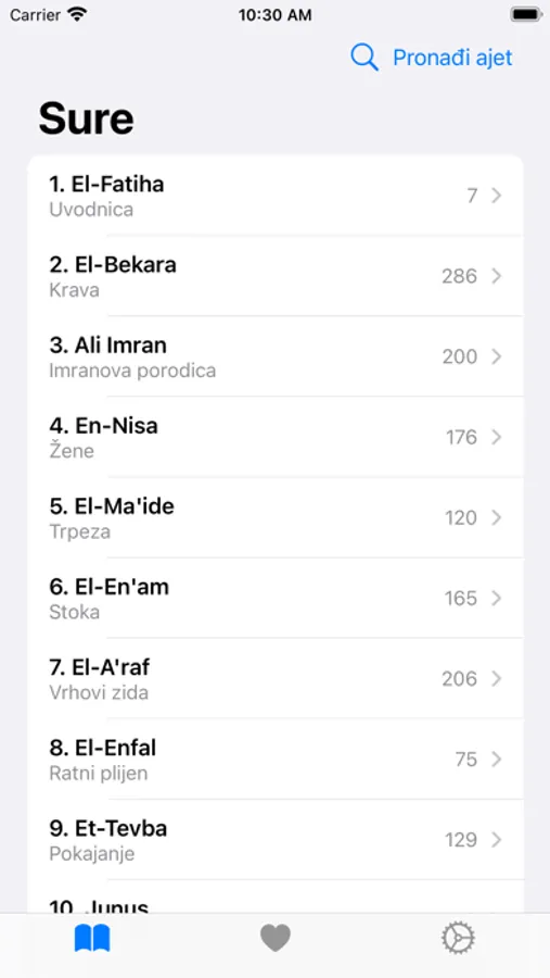 -Pretragu sura i ajeta u suri zbog lakšeg korištenja