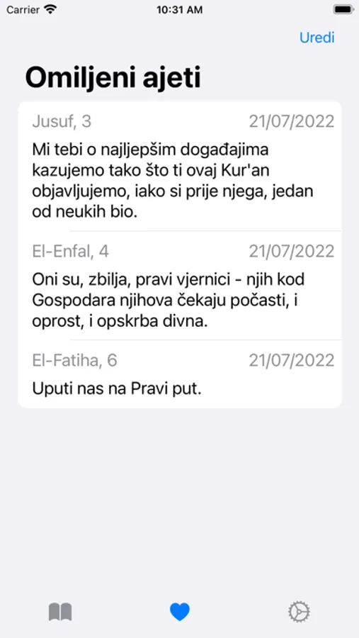 -Postavljanje Widgeta na početni zaslon koji će svaki dan prikazivati po jedan ajet kao motivaciju i podsjetnik