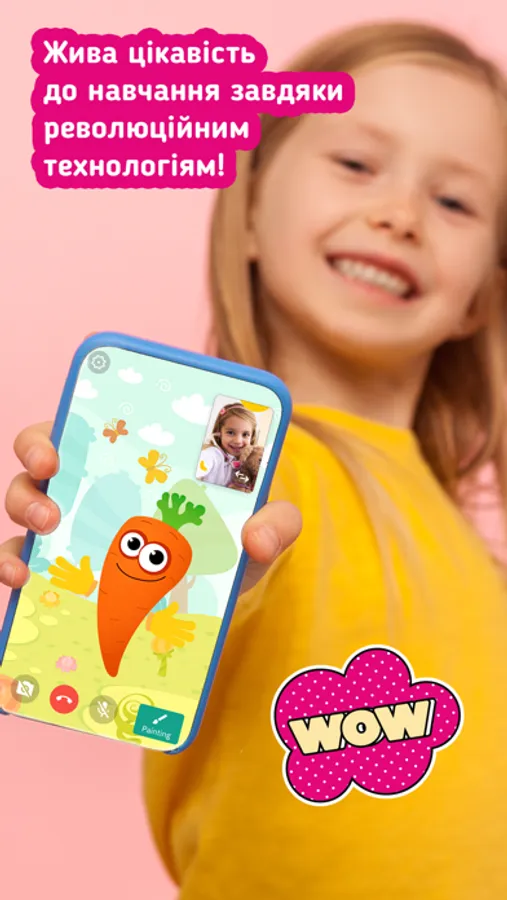 Займайтеся де завгодно і в зручний час через інтерактивний мобільний застосунок. Щоб малювати, грати, взаємодіяти з персонажем на екрані смартфону, потрібен тільки інтернет!