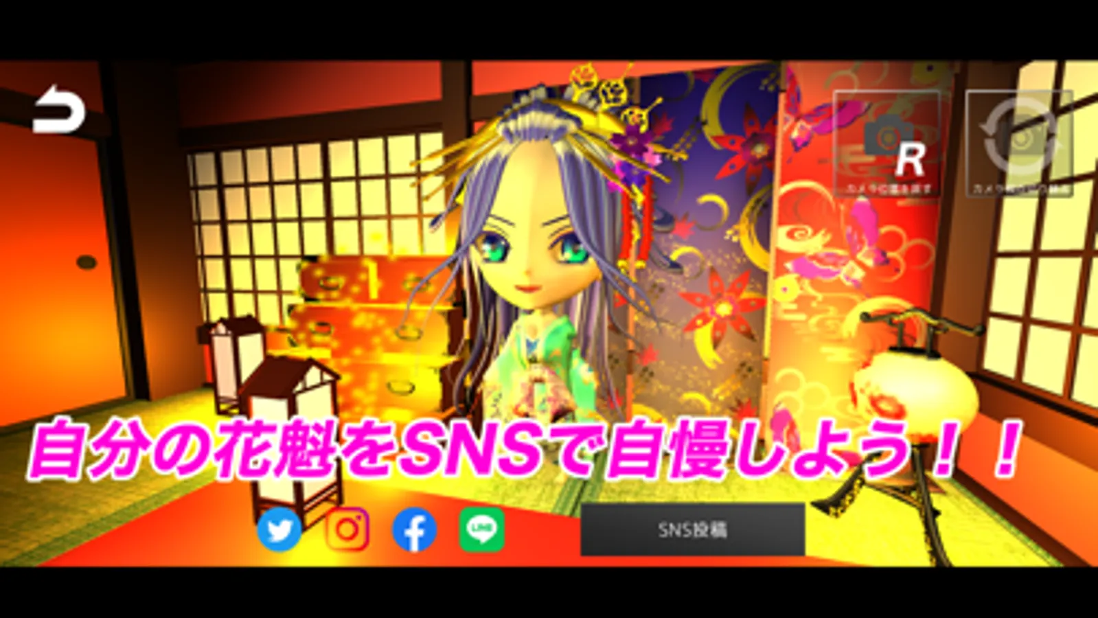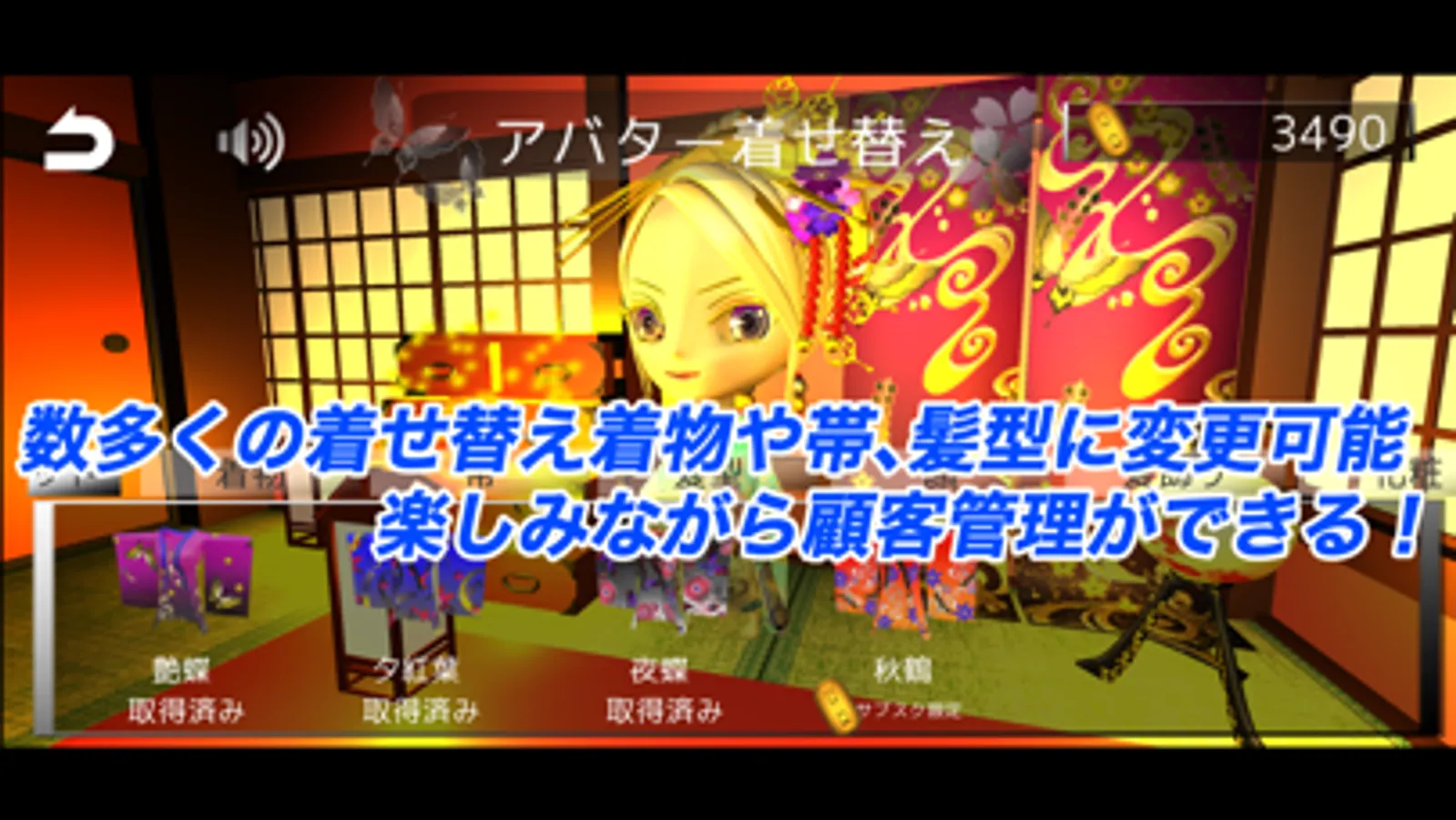 売上が上がったり、顧客数を増やしていくと自分の花魁が可愛くオシャレに進化する。