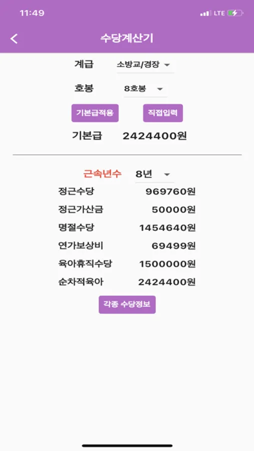 각종 수당부터 급여 계산까지... 어려운 경찰 및 소방공무원 등의 교대직렬 초과도 알아서 척척계산 해줍니다.
