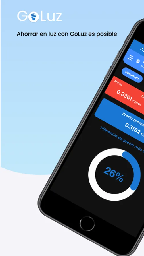 GoLuz - Ahorrar en luz es la aplicación perfecta para consultar el precio de la luz de la tarifa regulada, conocida como PVPC 2.0TD, por horas de manera sencilla e intuitiva.