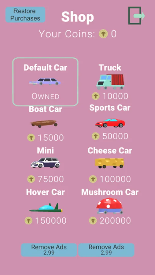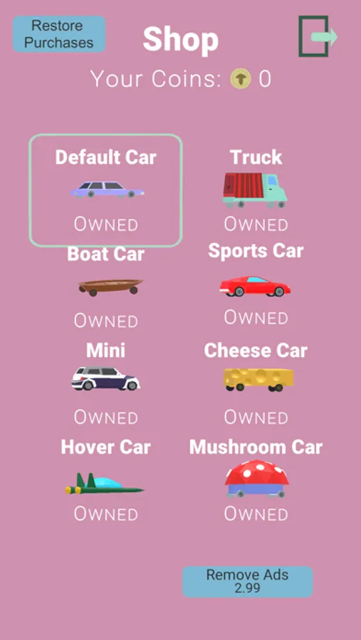 Drive through the beautiful land of mushrooms achieving new high scores and unlocking new cars!