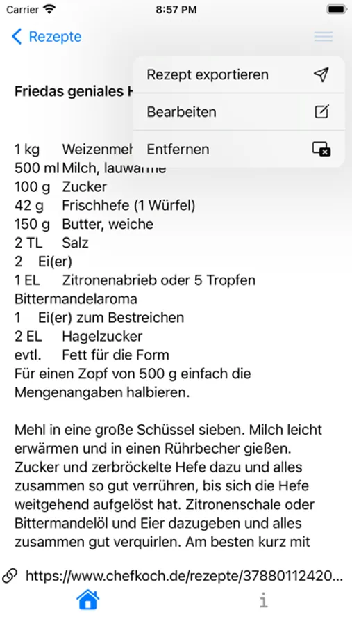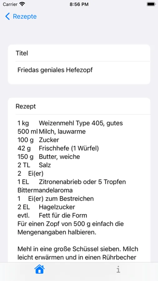 Minimalistisches Rezeptbuch mit der Möglichkeit, Rezepte zu exportieren und importieren.