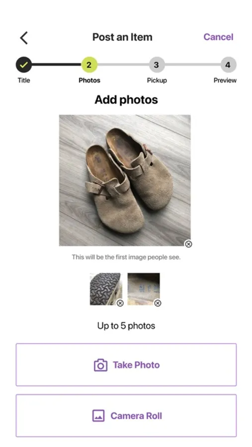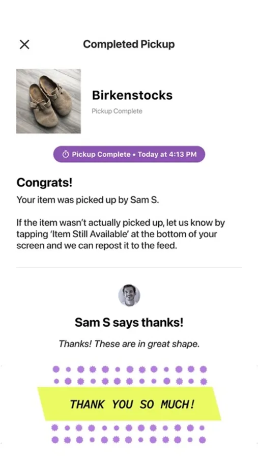Post items on your local feed just like you would post a picture on Instagram. If you have a porch, you can set it outside on your porch and we'll take care of the rest. If you don't have a porch or you can't set the item outside for some reason, that's okay too, you can create a scheduled pickup directly in the app, without having to message with folks.