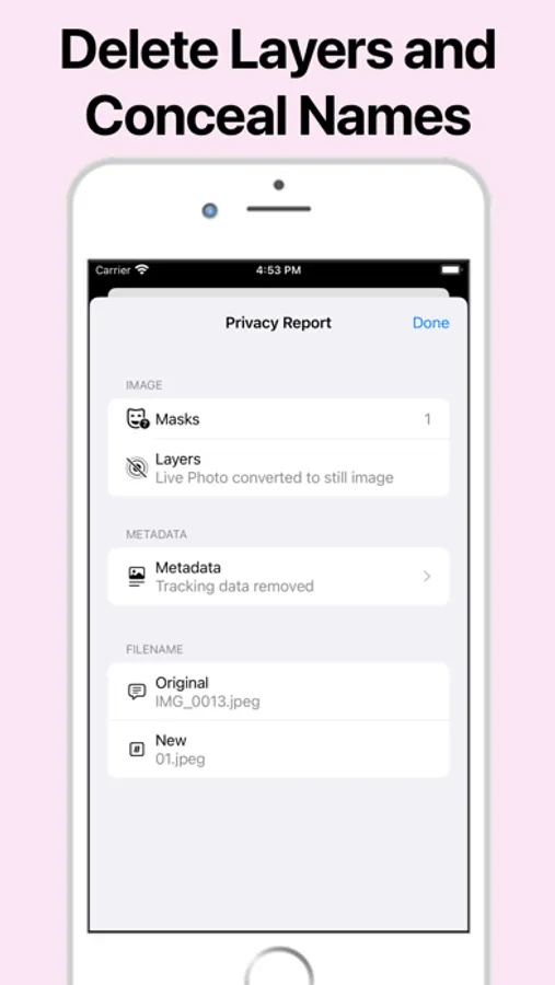 These all help prevent unwarranted data mining and reduce the data available for digital fingerprinting. The results can be viewed in the Discretion photo Privacy Report within the app.