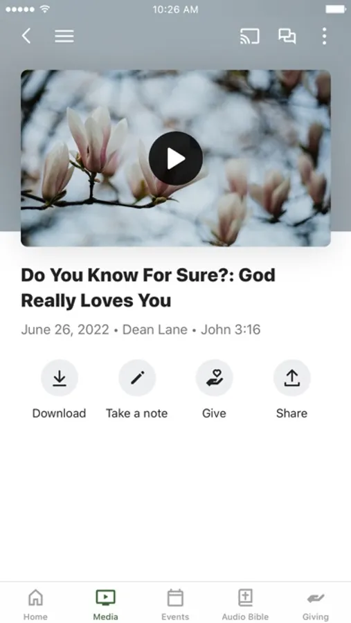 This app will help you stay connected with the day-to-day life of our church. With this app you can: watch or listen to past messages; stay up to date with push notifications; share your favorite messages via Twitter, Facebook, or email; and download messages for offline listening.