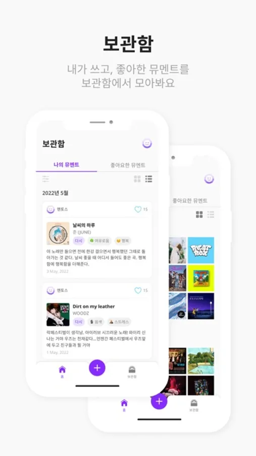 - 보관함: 내가 쓰고, 좋아한 뮤멘트를 보관함에서 모아봐요.
