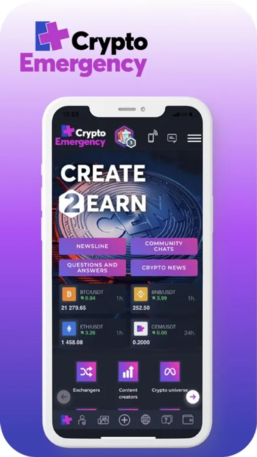 Общаясь на платформе, вы получаете актуальные знания и монеты. Наш слоган: “Create2Earn” - создавай и зарабатывай. Каждый человек на платформе зарабатывает коины CEM за каждое действие.