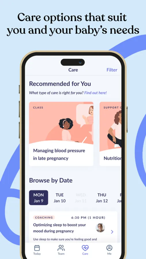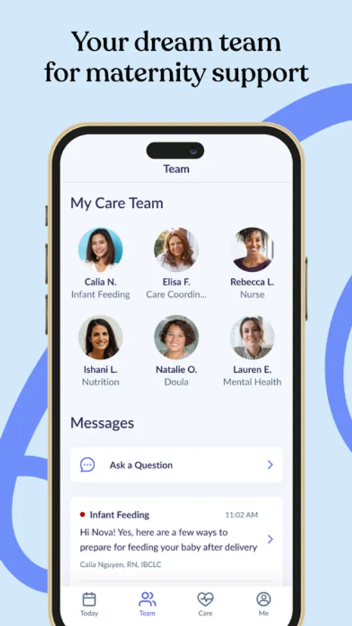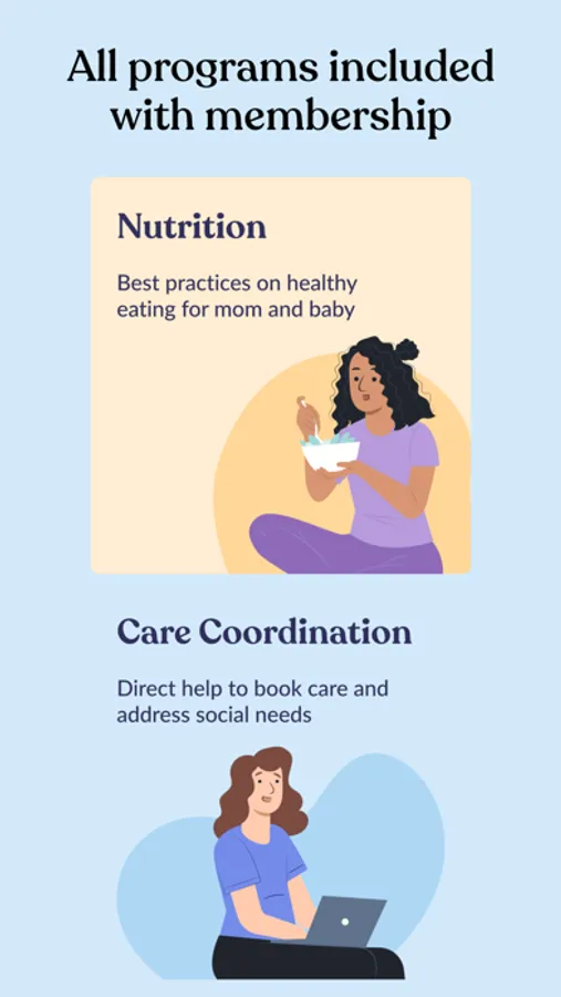 Get your own care team of nurses, lactation consultants, doulas, mental health coaches, nutritionists, and care coordinators who are there for you seven days a week virtually and in Mahmee clinics.