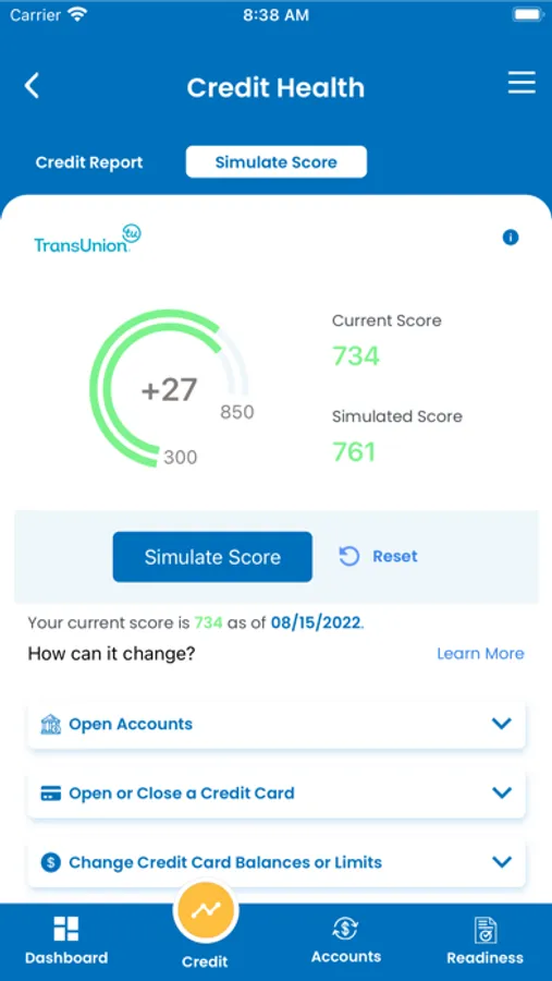 Your credit score is prominently displayed in your dashboard - and it doesn't cost you anything. Track changes month to month and learn the key factors that make up your score like length of credit, timely payment history, utilization of credit, total accounts opened and inquiries. Don't worry, this is a "soft credit pull" meaning there is no impact to your score by checking it. Look through your credit report for accuracy. Access helpful articles that explain credit bureaus, credit score, and more.