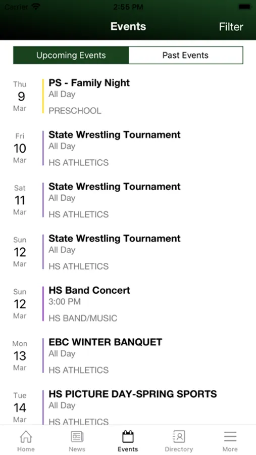 - Review athletic event details, including opponents, game results, recap commentaries, and more
