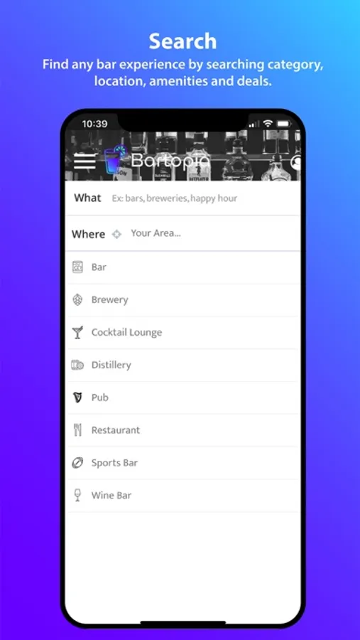 • Search based on types of bars (ex. Cocktail Lounge, Brewery, Pub)