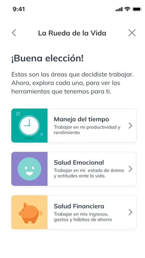 El poder de tus emociones es más valioso de lo que imaginas, te damos las herramientas para potenciarlo. Luego de una autoevaluación, podrás elegir dos áreas de tu vida en las que quieras mejorar tu salud emocional.