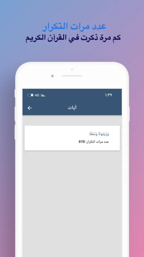 و التعرف على عدد مرات ذكر أي كلمة في القرآن الكريم ،