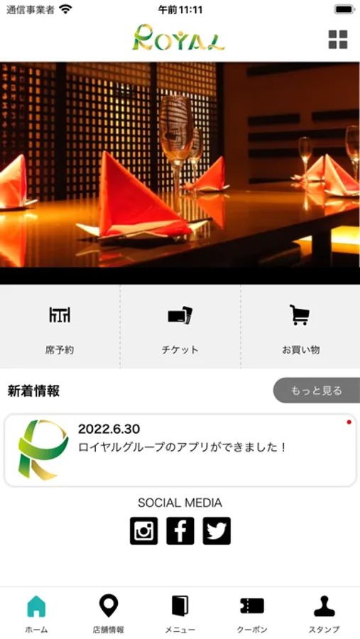 さいたま市内に構えるカフェラウンジ オオミヤ、クオンズ、なかちょバル、オオミヤバルの4店舗が合わさったお得で便利なロイヤルエンターテインメントのアプリです。