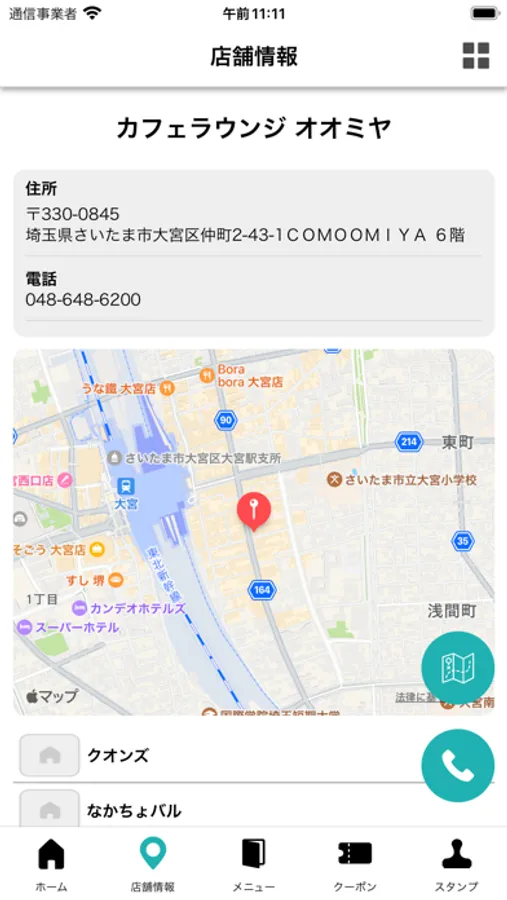 カフェラウンジ オオミヤ、クオンズ、なかちょバル、オオミヤバル各店の席予約が行えます。