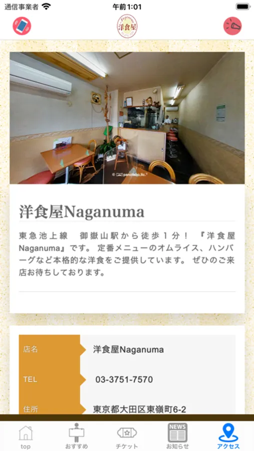 Naganumaアプリは、東京都大田区東嶺町6丁目にある洋食「Naganuma」の公式アプリです。